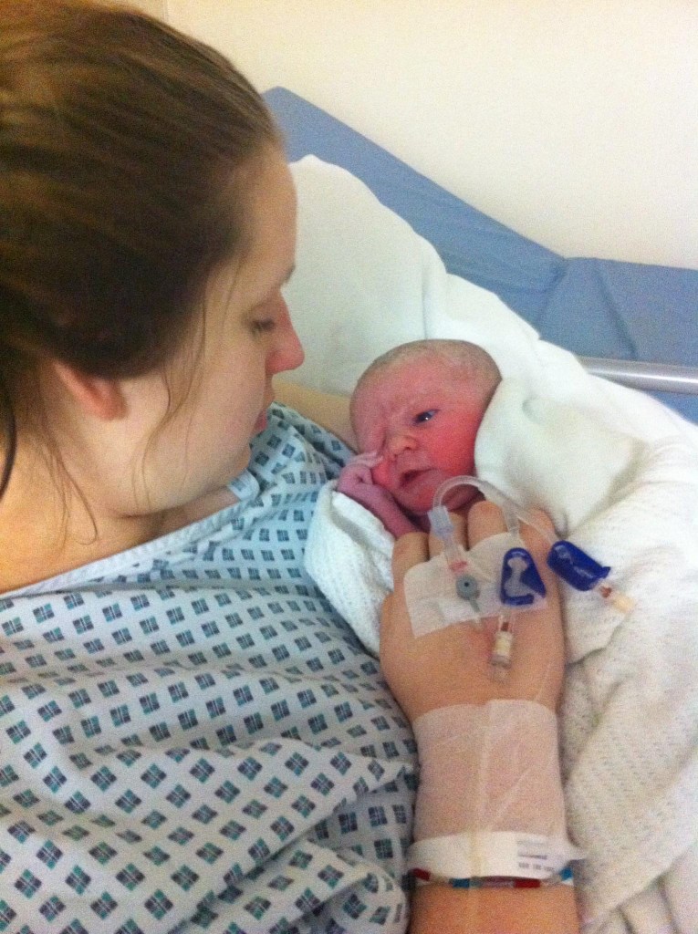 I remember waddling through the hospital doors, towel between my legs, and approaching the front desk, to be greeted with “how can I help”. Baffled that it wasn’t immediately obvious what was going on I explained, and was taken quite promptly to the labour ward. It wasn’t long before I was put into a room for examination and offered gas and air for some pain relief. Unfortunately for me it didn’t help at all, and I found myself being sick again – yup childbirth is glamorous!